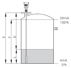 通過輸入空罐高度E(=零點(diǎn)),滿罐高度F(=滿量程)及一些應(yīng)用參數(shù)來設(shè)定,應(yīng)用參數(shù)將自動(dòng)使儀表適應(yīng)測量環(huán)境。對(duì)應(yīng)于4-20mA輸出。