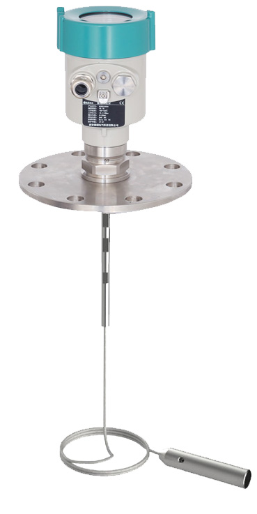導(dǎo)波雷達(dá)是基于時(shí)間行程原理的測(cè)量?jī)x表,雷達(dá)波以光速運(yùn)行,運(yùn)行時(shí)間可以通過電子部件被轉(zhuǎn)換成物位信號(hào)。探頭發(fā)出高頻脈沖并沿纜式探頭傳播,當(dāng)脈沖遇到物料表面時(shí)反射回來被儀表內(nèi)的接收器接收,并將距離信號(hào)轉(zhuǎn)化為物位信號(hào)。