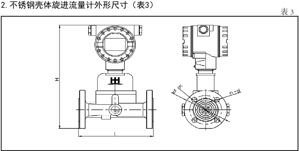 1.鋁合金殼體旋進(jìn)流量計(jì)外形尺寸(表2)