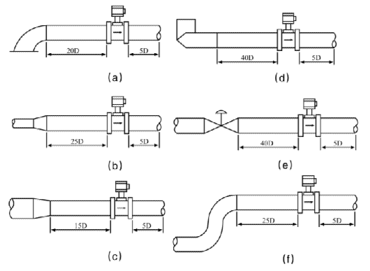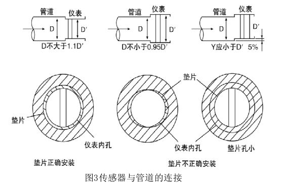 2)配管應與傳感器同心,同軸度應不小于0.05D′
