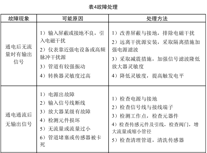 在通電不通流時轉換器應無輸出,瞬時流量指示為零,累積流量無變化,否則首先 檢查是否因信號線屏蔽或接地不良,或管道震動強烈而引入干擾信號。如確認不是上述 原因時,可調整轉換器內電位器,降低放大器增益或提高整形電路觸發(fā)電平,直至輸出 為零。
